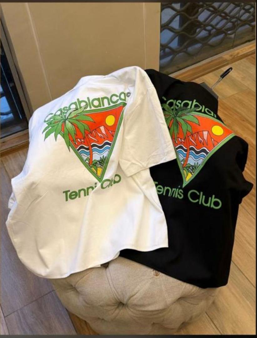 The Casablanca Tennis Club Icon T-shirt in black is an elegant piece that reflects the brand's sophisticated and sporty spirit. Made from high-quality cotton, it offers comfort and durability, ideal for both everyday activities and more refined looks.